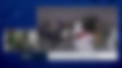 NFL Media's Kurt Warner chats with San Francisco 49ers quarterback Brock Purdy ahead of Super Bowl LVIII.